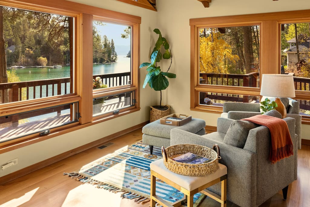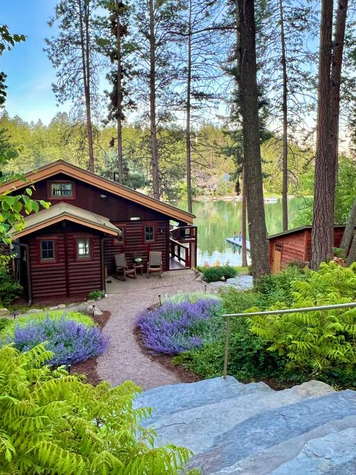 Comfort is paramount. From mindful mattress selection to cushy outdoor furniture, we've taken every detail into account to create an optimal experience for our guests. Bedrooms: Queen bedroom on the main level across from a bathroom with shower. King bedroom tucked away on the lower level with a peekaboo lake view. The bathroom on this level has a tub/shower. Also on the lower level, is a family/tv room with a bunk space. From the family room, sliding glass doors lead out to a screened porch for bug-free dining and lounging. The kitchen is the hub of the cabin with a large island and lake views. You'll have everything you need to do as much or as little cooking as you prefer. Espresso maker, French press, coffee grinder, KitchenAid mixer, blender, quality knives and cookware with all the tools needed to help you cook with ease. The dining table looks out to lake and mountain views, and seats 6 (4 more at the island). The living room is a cozy space to unwind, with a gas fireplace and comfy sectional. We provide s’mores makings and firewood for the campfire! Roast a marshmallow at the fire pit and gaze at the stars. Our swimming beach is pebbly and perfect for launching watercraft as well as for children to swim. It’s pretty shallow and protected from big wake, only about 4 feet at the deepest point- gently sloped for little swimmers. Our outdoor gear is all available for guests to play on the lake. Kayaks, paddleboards, life jackets, and canoe. You'll have two docks for your boat. Plenty of outdoor seating on the deck overlooking the lake, screened porch on lower level, near the beach. You’ll love our peaceful bay! Please, note: Flathead Lake is fed by melting snowpack. This means the water levels of the lake vary depending on the season. Water levels begin to recede in October/November and the melting snowpack begins to refill the lake in April/May. During late spring, there is usually no water or snow directly in front of the house. Our bay is still a tranquil getaway, but please know the water levels change with the seasons. We look forward to sharing this little bit of heaven with you!!